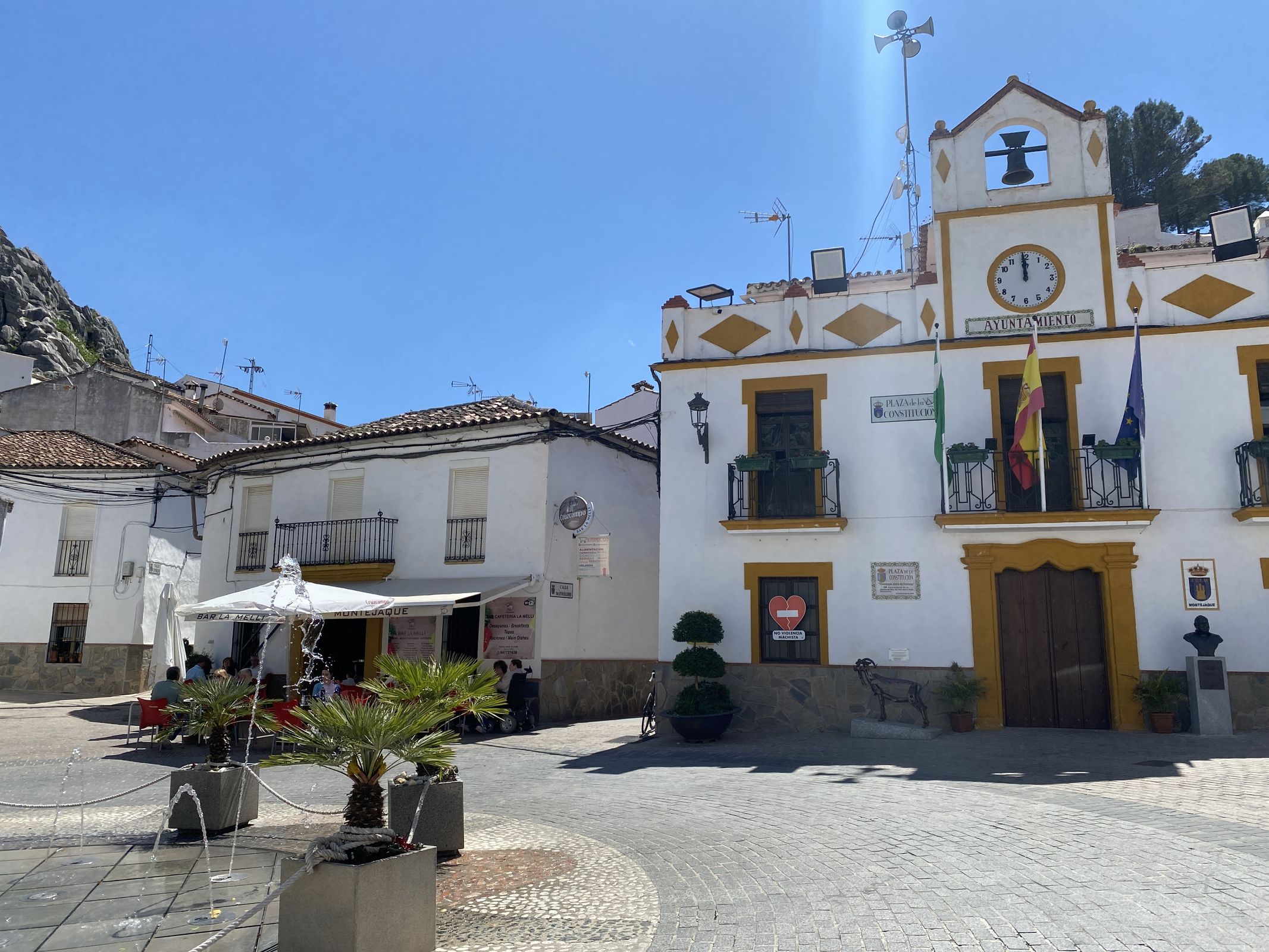 From here we turn onto a quieter road towards Barriada de la Estación, the lowest point in the valley. In Barriada de la Estación there is another friendly bar, Allioli Bar y Más, ideal for a short break. After that follows a beautiful climb through wide fields of flowers towards Montejaque, where we have lunch on the cosy village square at Bar La Melli.