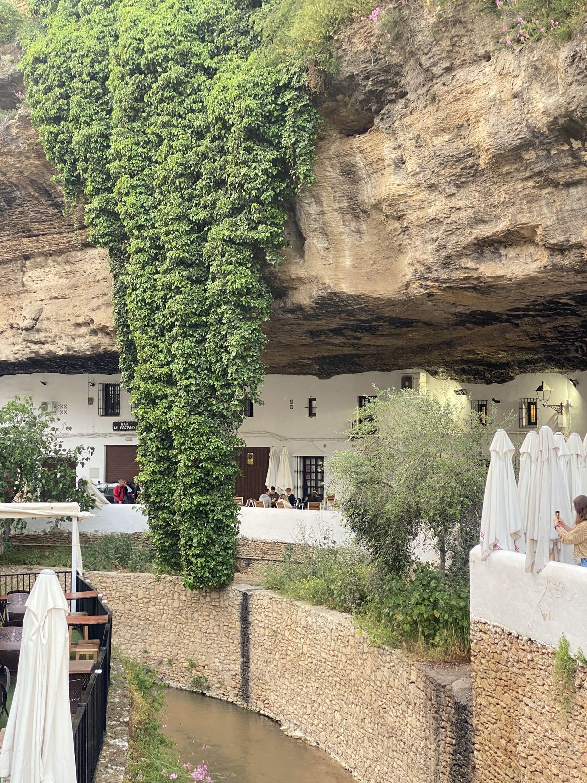 After a substantial hamburger and a beer (it is still a holiday after all), we continue our route towards Setenil. This is by far one of the most extraordinary villages in Andalusia. Setenil is known as a cave village, where houses are literally built under and into large rock formations. This way of building dates back to Moorish times and used to offer protection from heat and external attacks. On both sides of a gorge you climb through this surreal-looking village, and at every corner you are once again surprised by the unique houses and narrow streets.
