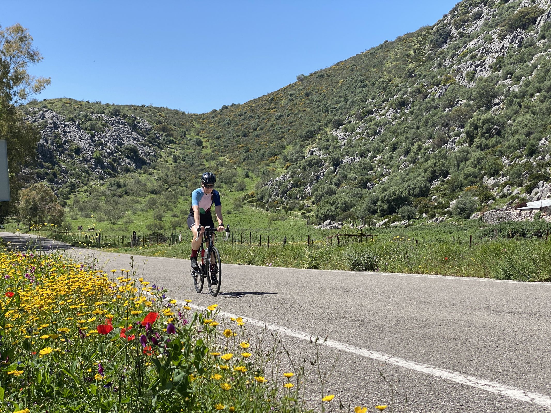 When I thought of southern Spain, I did not immediately think of well-paved roads, challenging climbs and winding descents. But Andalusia surprised me enormously as a road cyclist, and offers so much more besides. Of course there are the picturesque white villages, often with the familiar Moorish influences in the architecture. Vast olive groves and fields of wildflowers: the area around Ronda, where I spent a week cycling with Cycling Spain, is one of the greenest regions in Spain, and you really notice that when you are on the bike.